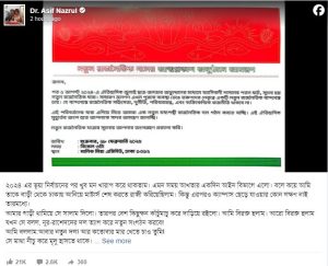 পাঠকদের জন্য তার পোস্টটি হুবহু তুলে ধরা হলো-