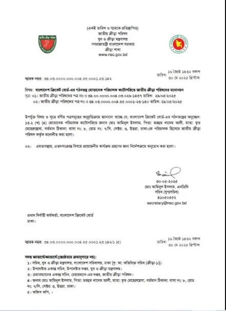 বিসিবির পরিচালনা পর্ষদে জাতীয় ক্রীড়া পরিষদ থেকে দুই জন পরিচালক মনোনীত করা যায়। বৃহস্পতিবার (২৯ মে) রাতে জাতীয় ক্রীড়া পরিষদ ফারুক আহমেদের মনোনয়ন প্রত্যাহার করে। ফলে সেই শূন্য পদের বিপরীতে আজ আমিনুল ইসলাম বুলবুলকে জাতীয় ক্রীড়া পরিষদ পরিচালক হিসেবে মনোনয়ন দিয়েছে।