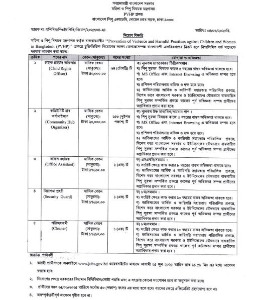 যোগ্যতা: স্নাতকোত্তর বা সমমান ডিগ্রি। শিশু সুরক্ষাবিষয়ক কাজে ৫ বছরের বাস্তব অভিজ্ঞতা থাকতে হবে।