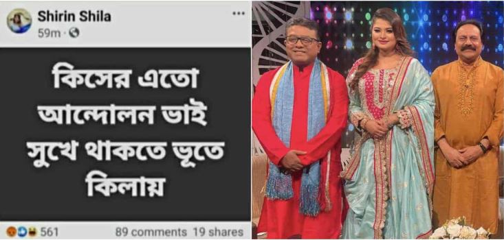 কিসের এত আন্দোলন, সুখে থাকতে ভূতে কিলায়’-গত বছরের জুলাই মাসে সারা দেশে যখন কোটা সংস্কার আন্দোলন নিয়ে উত্তাল, তখন শিক্ষার্থীদের আন্দোলন নিয়ে এই বিতর্কিত স্ট্যাটাস দিয়েছিলেন ঢাকাই সিনেমার সমালোচিত চিত্রনায়িকা শিরিন শিলা।