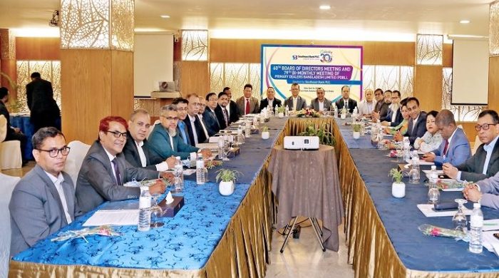 সাউথইস্ট ব্যাংক পিএলসি’র আয়োজনে সম্প্রতি ঢাকার গুলশানের লেকশোর হোটেলে প্রাইমারি ডিলারস বাংলাদেশ লিমিটেড (পিডিবিএল)-এর ৬০তম পরিচালনা পর্ষদের সভা এবং ৭৯তম দ্বি-মাসিক সভা অনুষ্ঠিত হয়েছে। সভায় সভাপতিত্ব করেন পিডিবিএল-এর চেয়ারম্যান ও