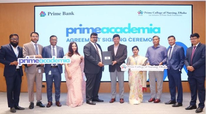 প্রাইম ব্যাংক পিএলসি ‘প্রাইমএকাডেমিয়া’র আওতায় পূর্ণাঙ্গ ব্যাংকিং সেবা সরবরাহ করতে প্রাইম কলেজ অব নার্সিং, ঢাকা-এর সাথে চুক্তি সই করেছে। সম্প্রতি ব্যাংকের করপোরেট অফিসে আয়োজিত এক অনুষ্ঠানে এ চুক্তি স্বাক্ষরিত হয়।