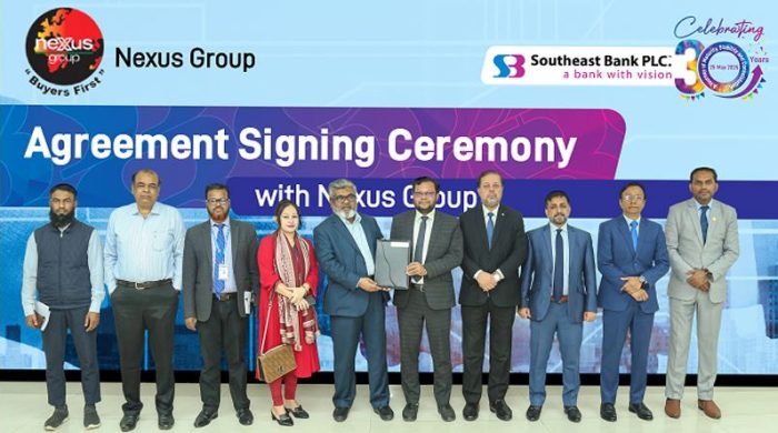 সাউথইস্ট ব্যাংক পিএলসির মাধ্যমে বেতন এবং অন্যান্য উত্তোলন সুবিধা পাবেন নেক্সাস গ্রুপ – এর স্টাফ ও কর্মচারীরা। সম্প্রতি সাউথইস্ট ব্যাংক পিএলসি এবং নেক্সাস গ্রুপ এ সংক্রান্ত একটি সমঝোতা স্মারক স্বাক্ষর
