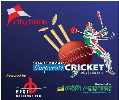 শেয়ারবাজারে সম্পৃক্ত প্রতিষ্ঠানগুলোকে নিয়ে ডেইলি শেয়ারবাজার ডটকমের উদ্যোগে আয়োজিত “সিটি ব্যাংক শেয়ারবাজার করপোরেট ক্রিকেট’২৫ পাওয়ার্ড বাই বেষ্ট হোল্ডিংস সিজন-৪” এর চ্যাম্পিয়ন হয়েছে সিটি ব্যাংক পিএলসি। এছাড়া রানার-আপ হয়েছে আলিফ ইন্ডাষ্ট্রিজ