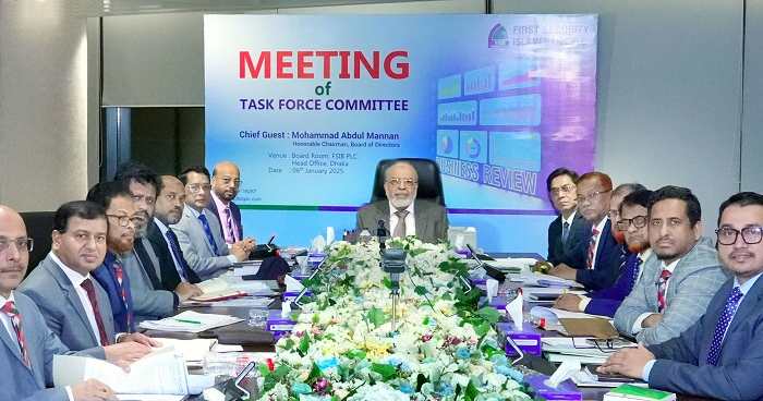 ফার্স্ট সিকিউরিটি ইসলামী ব্যাংকের (এফএসআইবি) পিএলসির টাস্ক ফোর্স কমিটির সভা অনুষ্ঠিত হয়েছে। সোমবার (৬ জানুয়ারি) ব্যাংকের প্রধান কার্যালয়ে সভাটি অনুষ্ঠিত হয়। ব্যাংকের চেয়ারম্যান মোহাম্মদ আবদুল মান্নান এতে প্রধান অতিথি হিসেবে