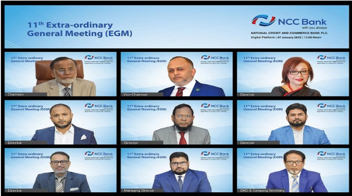 ন্যাশনাল ক্রেডিট এন্ড কমার্স ব্যাংক পিএলসির ১১তম বিশেষ সাধারণ সভা (ইজিএম) অনুষ্ঠিত হয়েছে। মঙ্গলবার (৭ জানুয়ারি) ডিজিটাল প্ল্যাটফর্মে সভাটি অনুষ্ঠিত হয়। কোম্পানিটি এক সংবাদ বিজ্ঞপ্তির মাধ্যমে এতথ্য নিশ্চিত করেছে। বিজ্ঞপ্তিতে