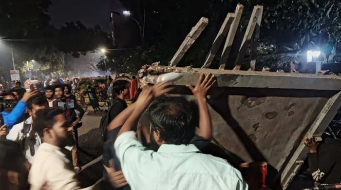 জনতার মিছিলে উত্তাল ধানমন্ডি ৩২ এর শেখ মুজিবুর রহমানের বাড়ি। এদিকে একই অবস্থা খুলনার শেখ বাড়ি। সেখানেও চলছে ভাঙচুর। শুধু তাই নয় বুলডোজার দিয়ে ভেঙে ফেলা হচ্ছে খুলনার শেখ বাড়ি।