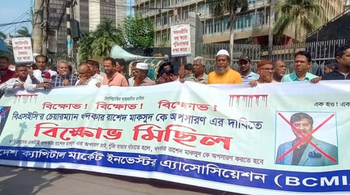 টানা দরপতনের প্রতিবাদের শেয়ারবাজারে বড় ধরনের বিক্ষোভ করেছেন বিনিয়োগকারীরা। মতিঝিলে ঢাকা স্টক এক্সচেঞ্জের (ডিএসই) সামনে বুধবার তারা বিক্ষোভ করেন। এ সময়ে তারা নিয়ন্ত্রক সংস্থা বাংলাদেশ সিকিউরিটিজ অ্যান্ড এক্সচেঞ্জ কমিশনের (বিএসইসি)