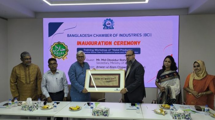 বাংলাদেশ চেম্বার অব ইন্ডাস্ট্রিজ (বিসিআই) “হালাল পণ্যের বাজার, হালাল পণ্য উৎপাদনে অনুসরণীয় পদ্ধতি এবং হালাল সার্টিফিকেট সংগ্রহ পদ্ধতি” বিষয়ক প্রশিক্ষণ কর্মশালা আয়োজন করেছে। আজ (০৫জুলাই) বিসিআই বোর্ডরুমে সংগঠনটির সভাপতি আনোয়ার-উল