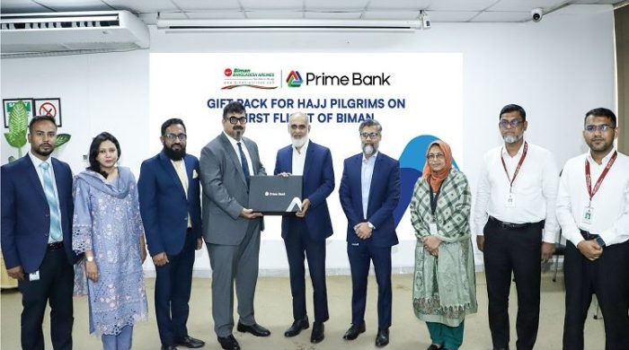 প্রাইম ব্যাংক পিএলসি. বিমান বাংলাদেশ এয়ারলাইন্স লিমিটেড-এর প্রথম হজ ফ্লাইটের যাত্রীদের জন্য বিশেষ উপহার সামগ্রী হস্তান্তর করেছে। বিমানের প্রথম হজ ফ্লাইট আগামীকাল মঙ্গলবার (২৯ এপ্রিল) শুরু হবে। সম্প্রতি বিমান বাংলাদেশ