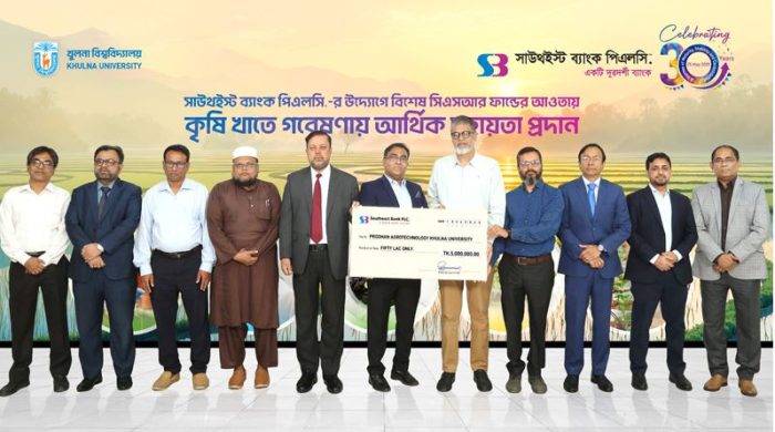 খুলনা বিশ্ববিদ্যালয়কে গবেষণা কার্যক্রম পরিচালনার জন্য সিএসআর তহবিলের আওতায় বিশেষ আর্থিক সহায়তা প্রদান করেছে সাউথইস্ট ব্যাংক পিএলসি। সামাজিক দায়বদ্ধতার অংশ হিসেবে এই সহায়তা প্রদান করেছে ব্যাংকটি। সম্প্রতি এই উপলক্ষ্যে আয়োজিত