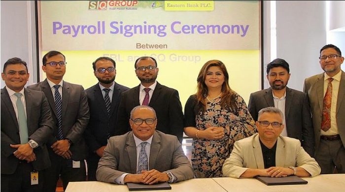 দেশের বেসরকারি বানিজ্যিক আর্থিক প্রতিষ্ঠান ইস্টার্ন ব্যাংক পিএলসির (ইবিএল) সঙ্গে পেরোল ব্যাংকিং চুক্তি স্বাক্ষর করেছে দেশের অন্যতম বৈদ্যুতিক সামগ্রী প্রস্তুতকারী প্রতিষ্ঠান এসকিউ গ্রুপ। সম্প্রতি ঢাকায় ইস্টার্ন ব্যাংকের প্রধান কার্যালয়ে চুক্তিতে