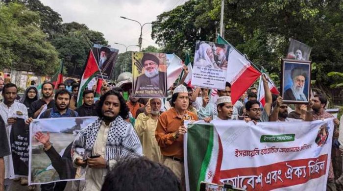 ইরানে ইসরায়েলি আগ্রাসনের প্রতিবাদে আজ শুক্রবার রাজধানী ঢাকায় বাদ জুমা সমাবেশ ও রেলি অনুষ্ঠিত হয়েছে। র্যালিটি ঢাকা বিশ্ববিদ্যালয় সেন্ট্রাল মসজিদের সামনে থেকে কলাভবন, শ্যাডো এবং মলচত্বর অতিক্রম করে রাজু ভাস্কর্যে
