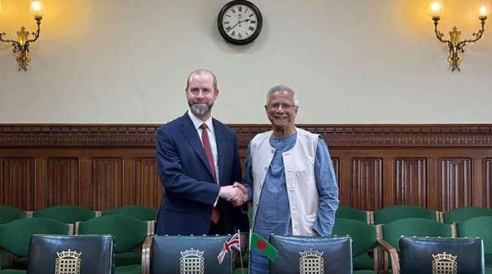 যুক্তরাজ্যের জাতীয় নিরাপত্তা উপদেষ্টা জোনাথন পাওয়েলের সঙ্গে বৈঠক করেছেন বাংলাদেশের অন্তর্বতীকালীন সরকারের প্রধান উপদেষ্টা অধ্যাপক ড. মুহাম্মদ ইউনূস। বুধবার (১১ জুন) সফরের দ্বিতীয় দিনে লন্ডন স্থানীয় সকাল ৯টায় অধ্যাপক ইউনূস