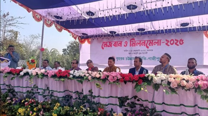 গাজীপুরে বসবাসরত বৃহত্তম চট্টগ্রামের অধিবাসীদের সংগঠন বৃহত্তর চট্টগ্রাম সমিতি গাজীপুর এর মেজবান ও মিলন মেলা ২০২৫ অনুষ্ঠিত হয়েছে। গাজীপুর সদর উপজেলার পিরুজালী সরকার পাড়ায় অবস্থিত আদুরী কুঞ্জে শুক্রবার দিনব্যাপী এই