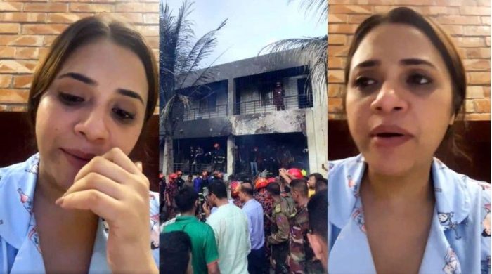 রাজধানীর উত্তরায় মাইলস্টোন স্কুল অ্যান্ড কলেজ ক্যাম্পাসে বিমান বাহিনীর একটি প্রশিক্ষণ বিমান বিধ্বস্তের ঘটনায় সারা দেশে শোকের ছাড়া নেমে এসেছে। এ ঘটনায় সামাজিক যোগাযোগ মাধ্যমে লাইভে এসে ছোট পর্দার অভিনেত্রী